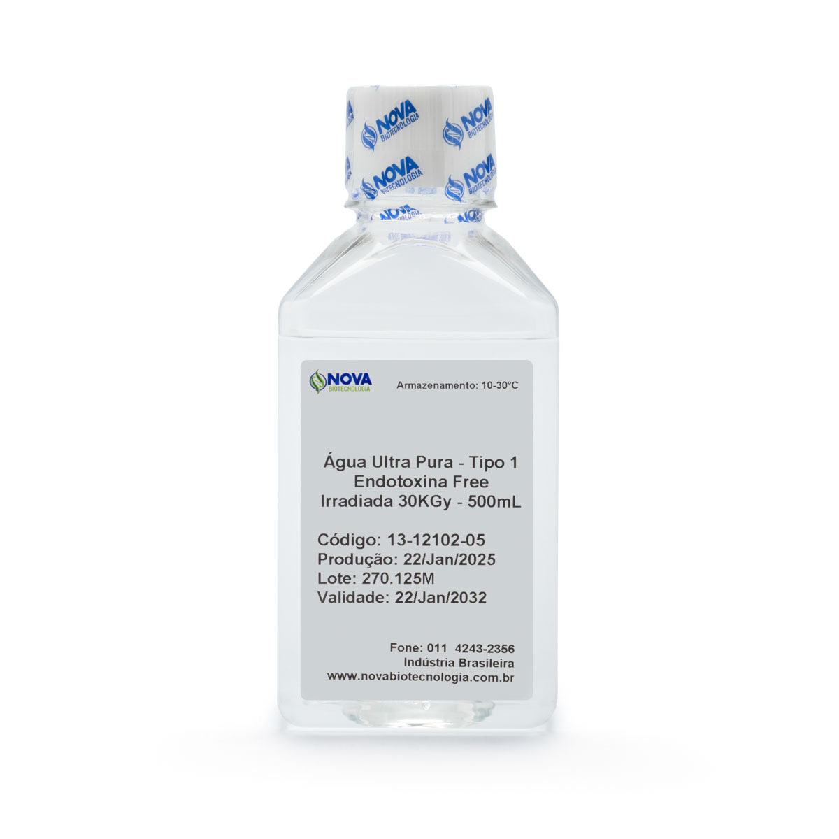 Água ultrapura, filtrada e irradiada, livre de endotoxinas.