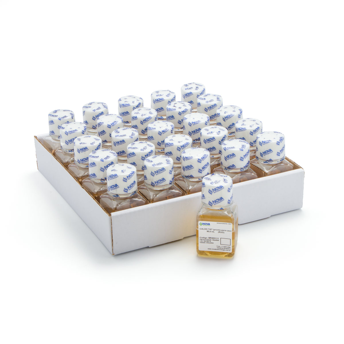 O caldo TAT (Tryptone-Azolectin-Tween) adicionado de Polisorbato (Tween 20) é um meio de cultura recomendado para testar a presença de microorganismos em materiais com alta viscosidade ou gelatinosos, tais como pomadas e ungüentos. Apresentação 1 caixa com 25 frascos de 90,0 mL cada.