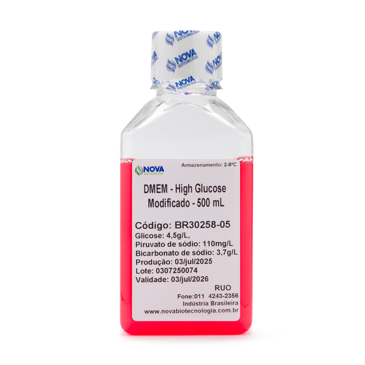 DMEM High Glucose (4,5g/L) com Piruvato de Sódio (110mg/L) e com Vermelho de Fenol – 500ml