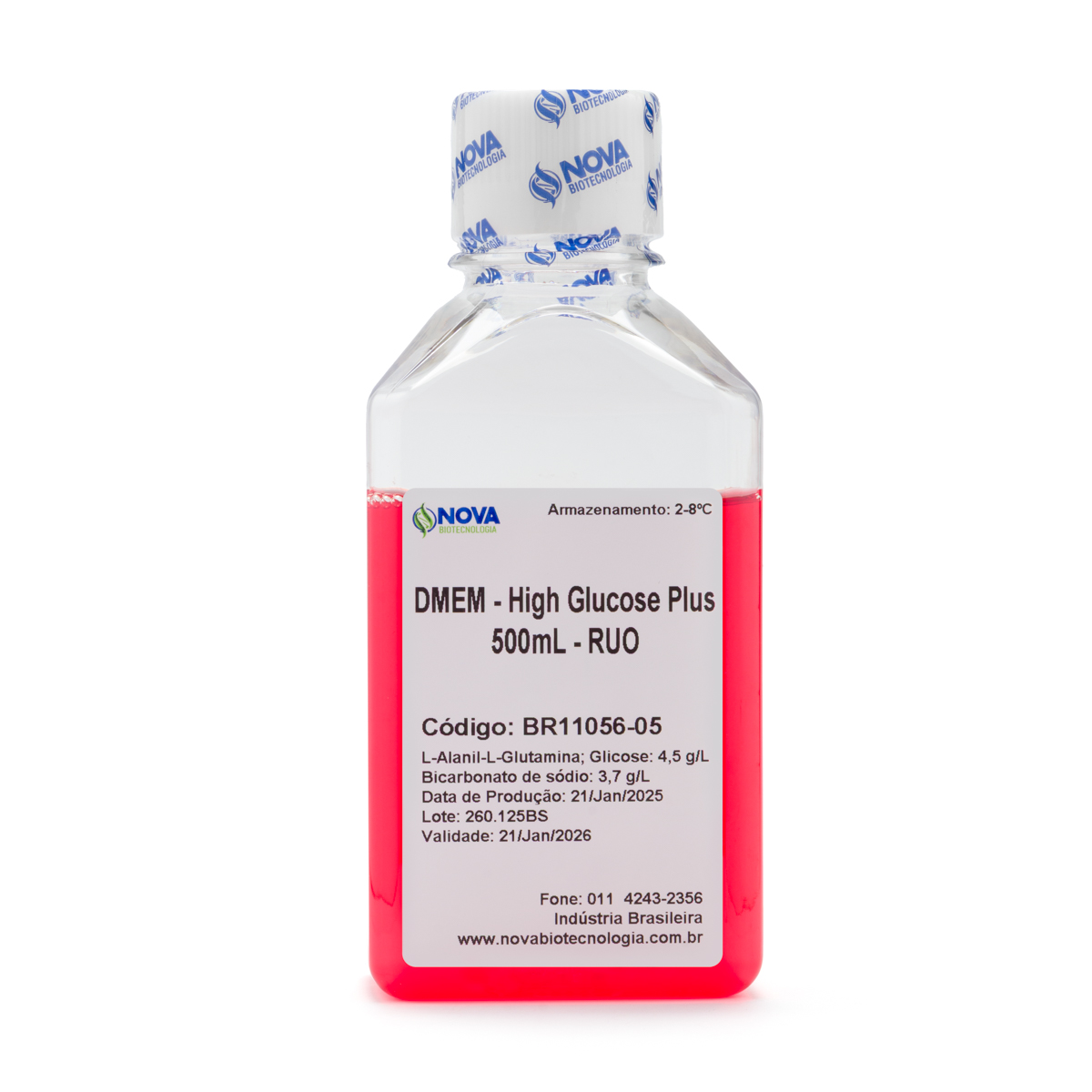 DMEM – High Glucose Plus com L-Alanyl -L-Glutamina [4,0mM/L], com piruvato de sódio [110mg/L], com glicose [4,5g/L] e bicarbonato de sódio [3,7g/L] – 500mL