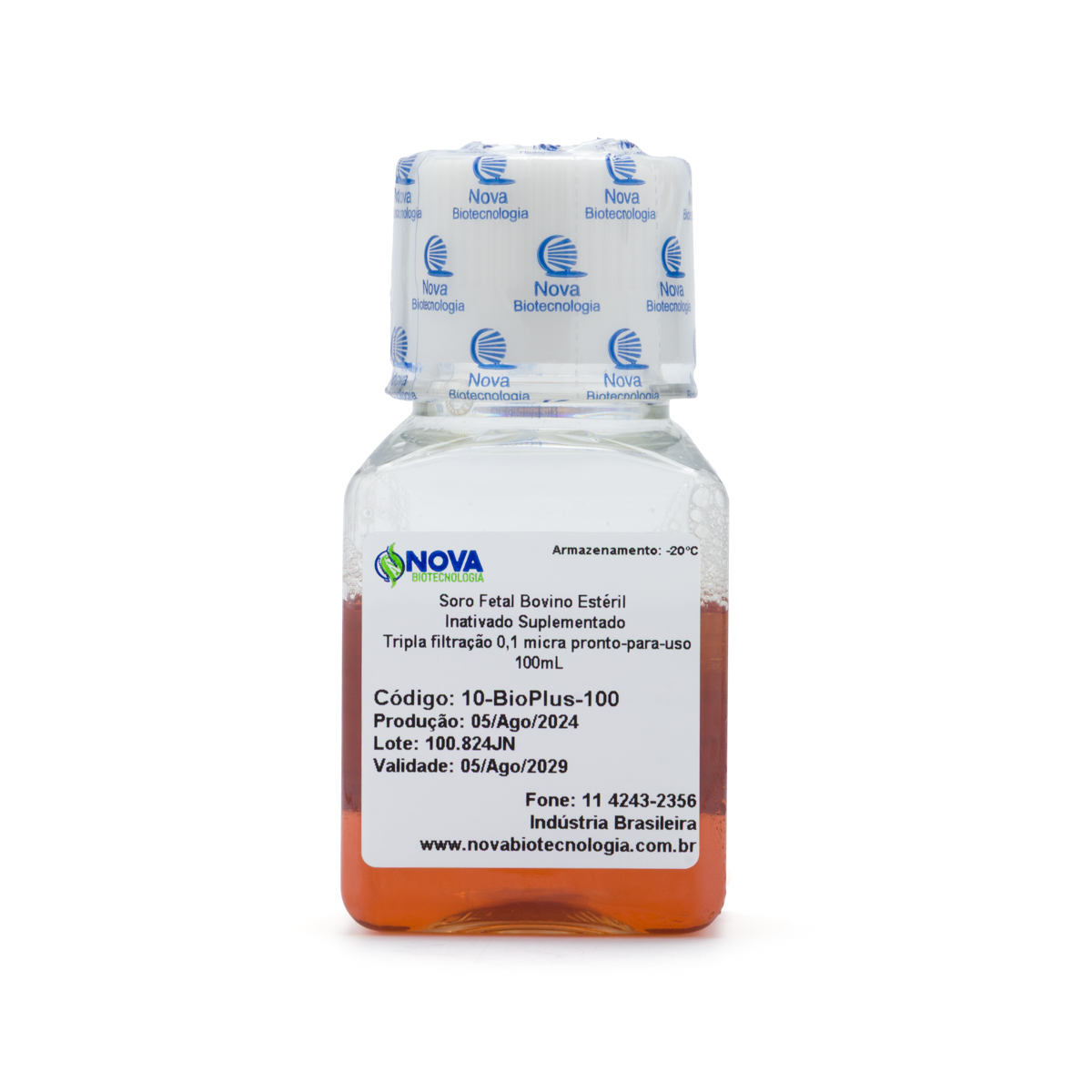 O Soro Fetal Bovino estéril inativado suplementado (SFB-Bioplus) da Nova Biotecnologia, triplamente filtrado através de 0,1 micra. SFB inativado suplementado pode ser utilizado em cultivos celulares eucarióticos.